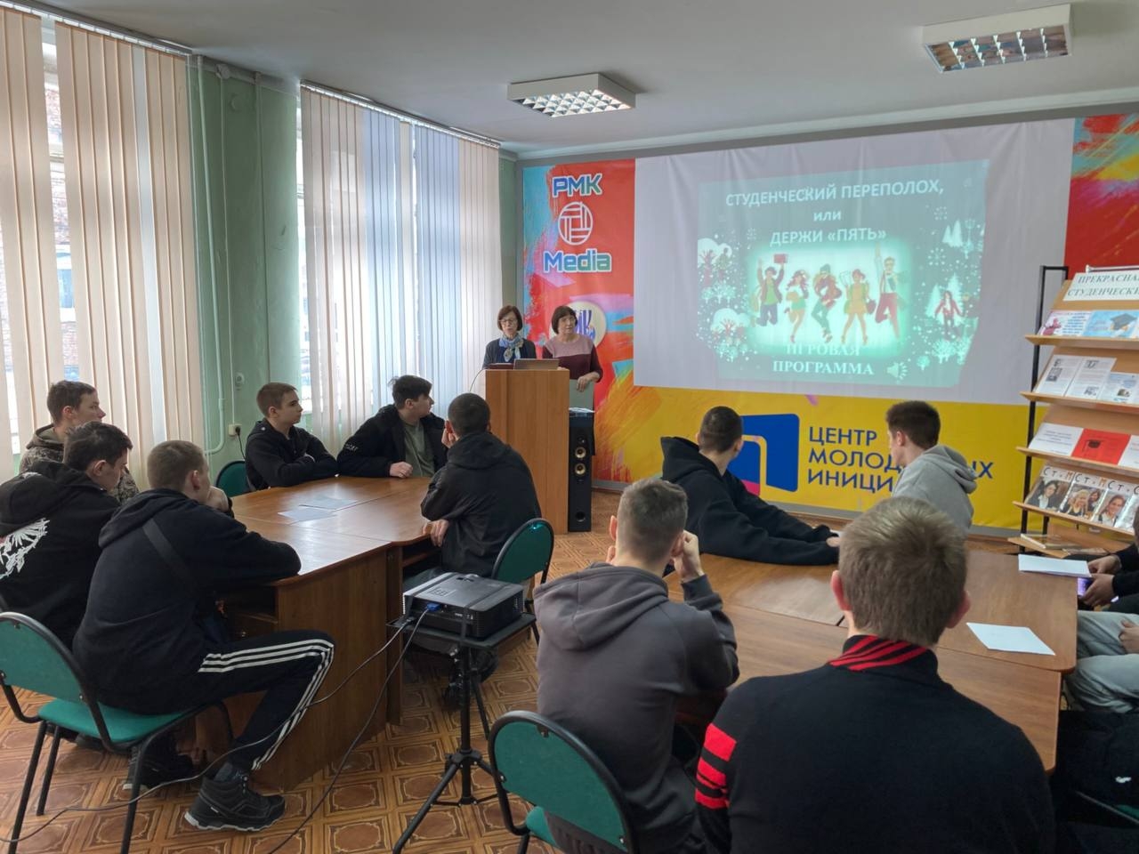 В преддверии Дня студента, 23 января, на базе СОГБПОУ «Рославльский многопрофильный колледж» сотрудниками читального зала и отдела искусств центральной библиотеки им. Н.И.Рыленкова проведено внестационарное мероприятие, приуроченное к празднованию Дня российского студенчества. Познавательно-развлекательная игровая программа «Студенческий переполох, или держи «пять»!», которая состояла из весёлых конкурсов и заданий, прошла в формате командного состязания.