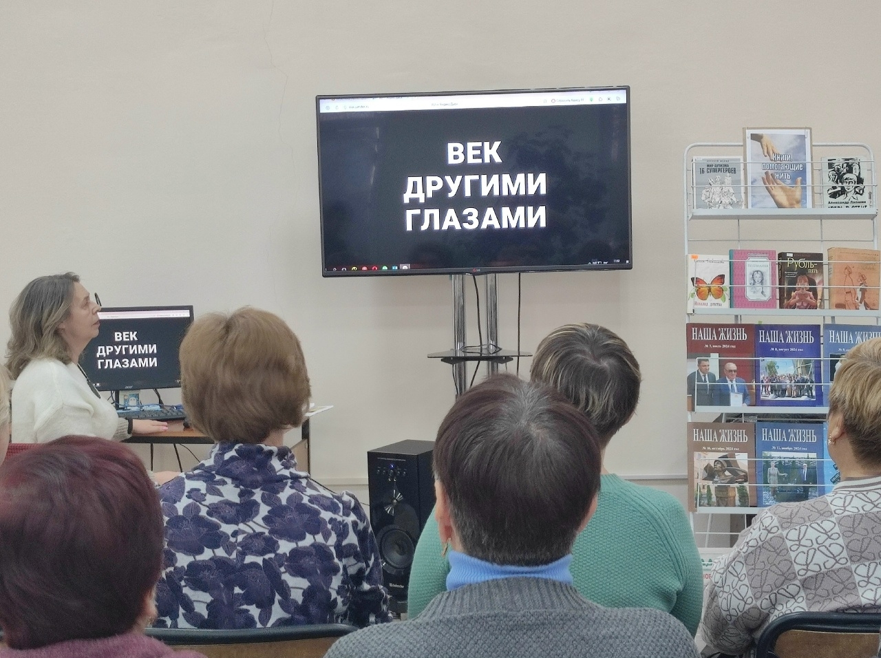 Мероприятие сопровождала тематическая выставка «Книги, помогающие жить», на которой были представлены произведения об инвалидах, крупношрифтовые журналы «Наша жизнь» и газета «Надежда».