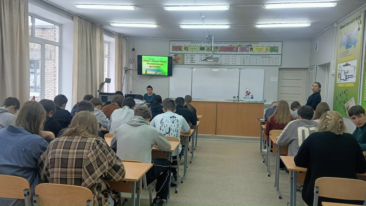24 февраля работниками абонемента центральной библиотеки им. Н. И. Рыленкова в рамках проекта «Пушкинская карта» на базе МБОУ «Средняя школа № 8 имени Героя Советского Союза А. Ф. Щербакова» для обучающихся старших классов проведена познавательная программа «Язык – основа нации», посвященная Международному дню родного языка.