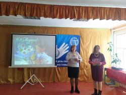 9 марта заведующая сектором по обслуживанию пользователей с ограниченными возможностями жизнедеятельности центральной библиотеки им. Н.И. Рыленкова приняла участие в праздничном вечере, посвященном Международному женскому дню «Весны чудесные мотивы» в Рославльском местном отделении Всероссийского общества глухих.