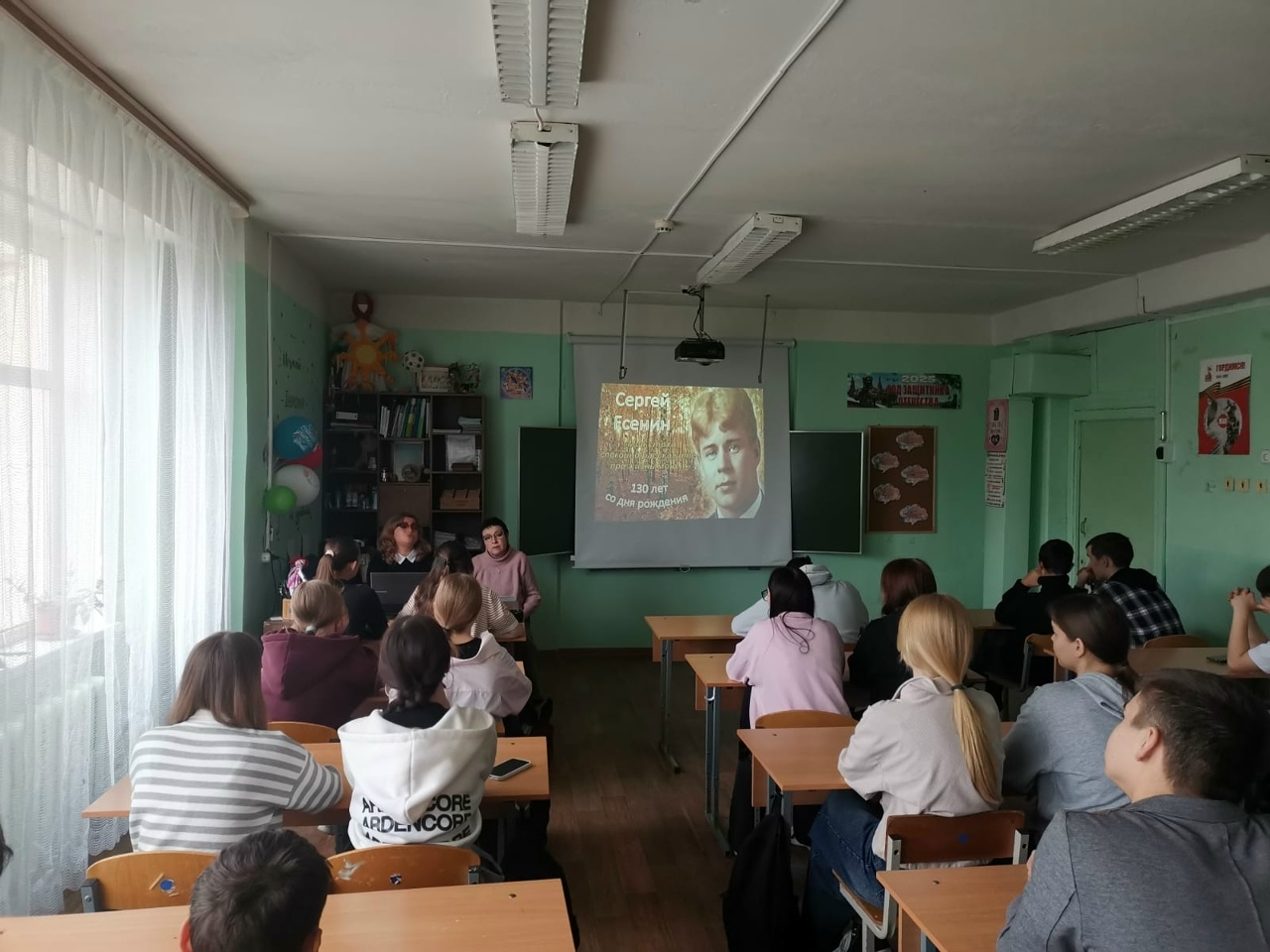 13 ноября на базе МБОУ «Средняя школа № 10» для обучающихся 9-х классов работниками абонемента центральной библиотеки им. Н. И. Рыленкова в рамках проекта «Пушкинская карта» проведена тематическая программа «Судьба и лира С. Есенина», посвященная 130-летию со дня рождения Сергея Александровича Есенина.