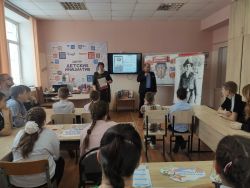 Библиотекарь познакомила школьников с тем, как мужественно и профессионально выполняли свой долг наши солдаты, как в сложнейших условиях проявляли мужество, стойкость, благородство, сохраняли верность военной присяге и долгу.