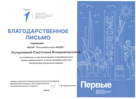 МБУК «Рославльская МЦБС» было вручено Благодарственное письмо от Главы муниципального образования «Шумячский район» Д. А. Каменева.